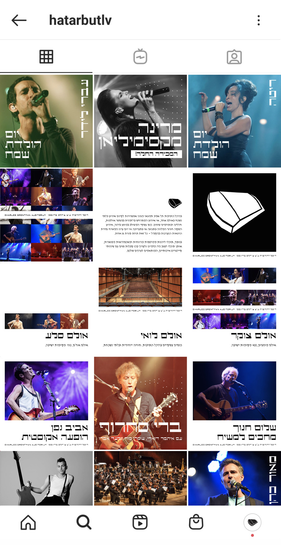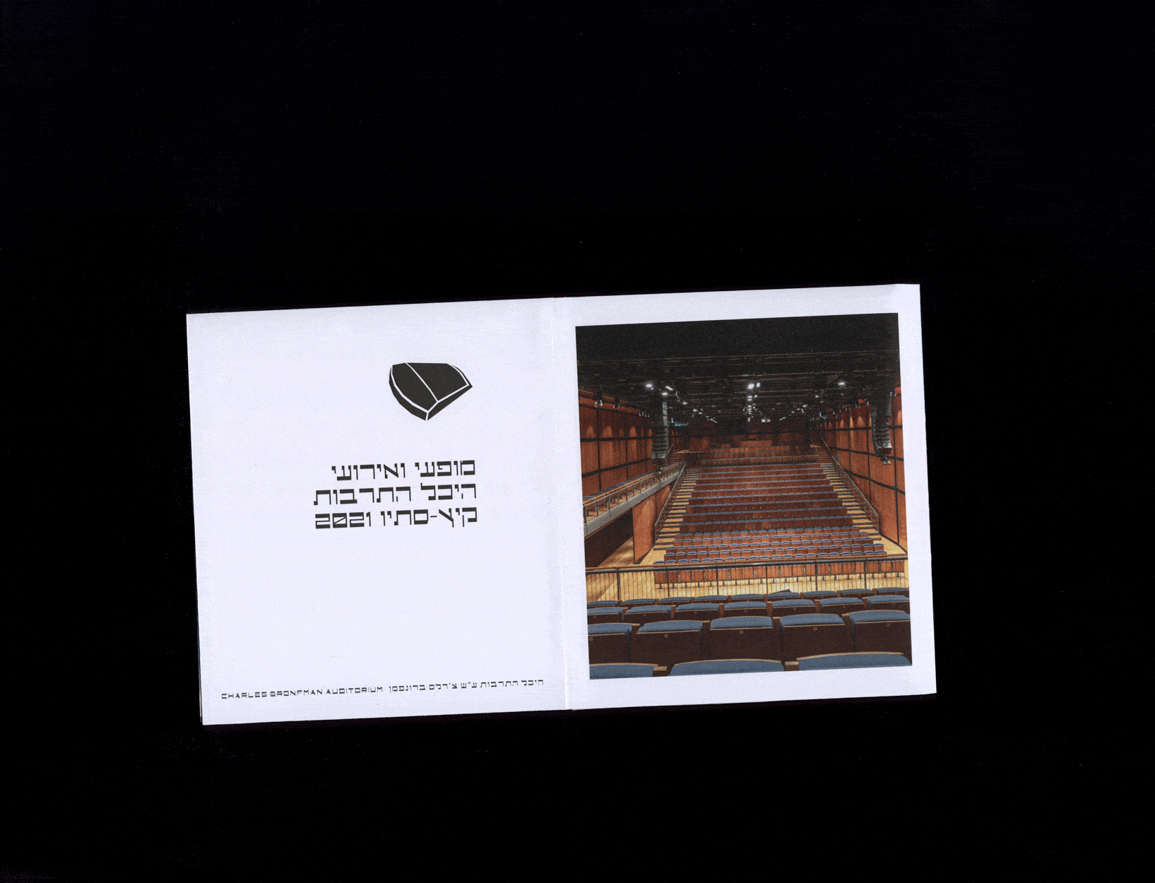 <h-300>HA'TARBUT<h-300> is an entire new [but nostalgic] identity for Tel-Avivian <italic>Heichal Ha'Tarbut<italic>, built in the late-Fifties, near the Israel National Theatre—<italic>Ha'Bima<italic>. As one of the most influential cultural institutions in the country since its foundation, the building holds musical and preforming-arts live performances between classical music to pop music concerts, and it is the official home for the Israel Philharmonic Orchestra. The identity’s concept based on the the knowledge that the performances themselves will bring the colour into the design, so the graphic decisions built just by texts and grids.
